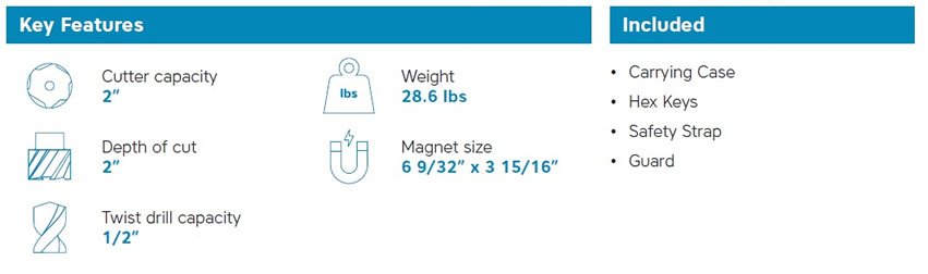 By eliminating the risk of explosion from sparking and the danger of electric shock and short circuits due to moisture; the airbor is quite simply the only magnetic drilling machine that can offer such a high degree of safety.