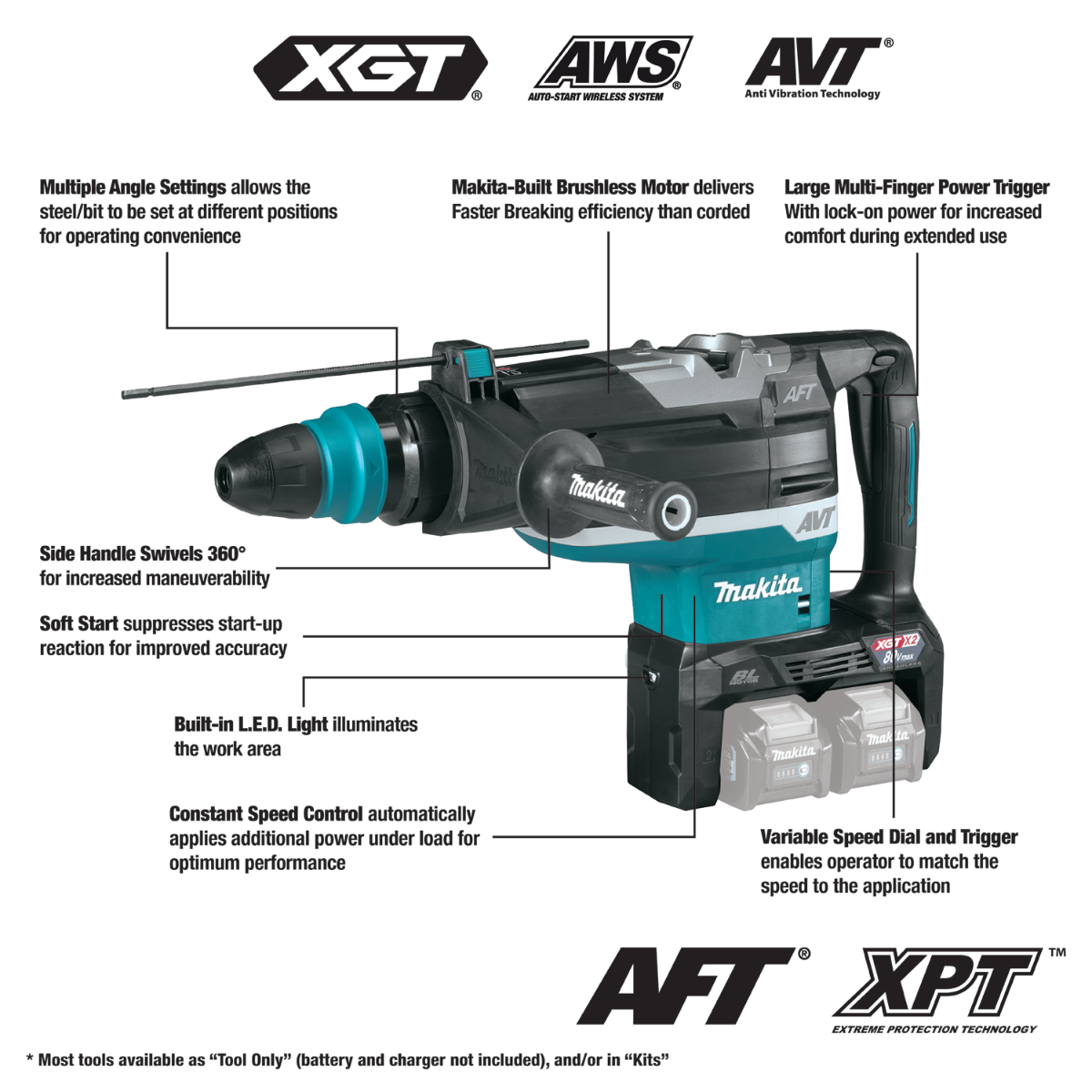 (1) 80V max (40V max X2) XGT® Brushless 2"AVT® Rotary Hammer, AWS® Capable (HR006GZ/ GRH06Z)