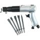 An economical air hammer with a long piston stroke, this tool is designed for exhaust work, bolt cutting, and front end work. The trigger control and a built in air power regulator give you full control of the speed and power. Longer stroke piston Alloyed steel barrel and heat-treated piston for longer life. Up to 2,000 blows per minute Specifications: Blows per minute: 2,000 Stroke length: 3-1/2 inch (89 mm) Shank: .401, Weight: 4. 1 lbs. (1. 86 kg) Length: 9. 9 (251) Average air consumption: 3 cfm, load 14 cfm Sound (pressure/power): 103. 5/116. 5 dBA Air inlet: 1/4 inch Chisel set includes edging tool, tail pipe cutter, straight cutter, cutting chisel and a punch