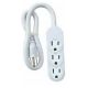 White mini 3-outlet power strip. Rotate cover on each outlet for safety and dust protection. Plastic enclosure. SJT, 14/3, 15A, 125V, 1875W, 2' cord. UL/CUL listed.