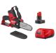 The Milwaukee M12 FUEL HATCHET 6 in. Pruning Saw Kit delivers unmatched control and access, has the power to cut 3 in. hardwoods and delivers up to 120 cuts per charge. This electric pruning saw is designed to meet the ergonomic, performance and durability needs of landscape maintenance professionals. Weighing less than 5 lbs. and featuring a compact design, the cordless pruning saw gives users increased control and maneuverability in tight access areas. The POWERSTATE Brushless Motor delivers the power to complete cuts in demanding hardwood materials. The REDLINK PLUS Intelligence enables full-circle communication between the tool and battery, providing users with unmatched levels of performance, protection and productivity. The advanced electronic package also delivers an instant throttle response and a variable speed trigger for ultimate control over the power range. The M12 REDLITHIUM XC 4.0 Ah Battery delivers best in class run-time and performance. This pruning saw features a full house chain, easy access chain tensioner, automatic oiler, metal bucking spikes and onboard storage for the scrench.