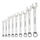 Each combination wrench in this set has a 12-point box end with 15 deg. offset to help reach tight areas. The wrench set comes with a durable wrench rack for organization and storage.